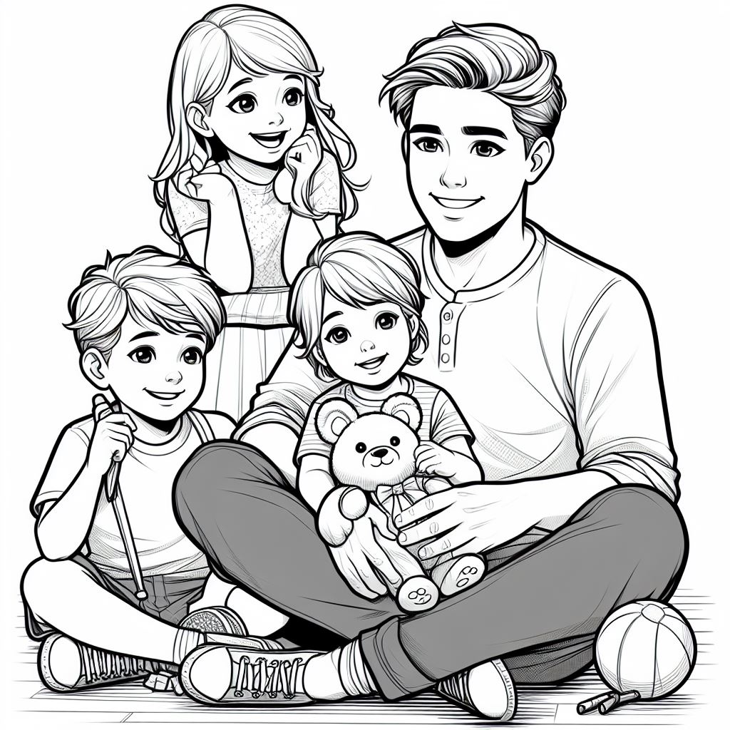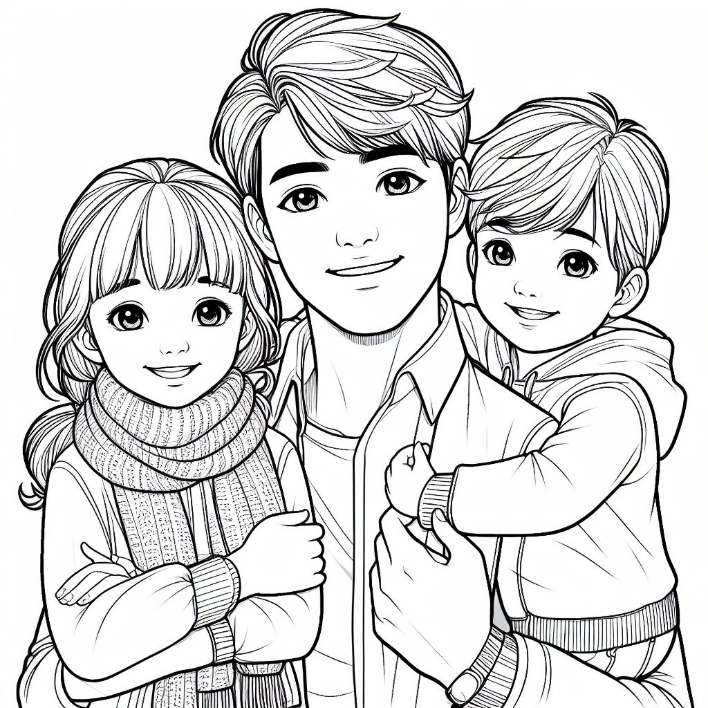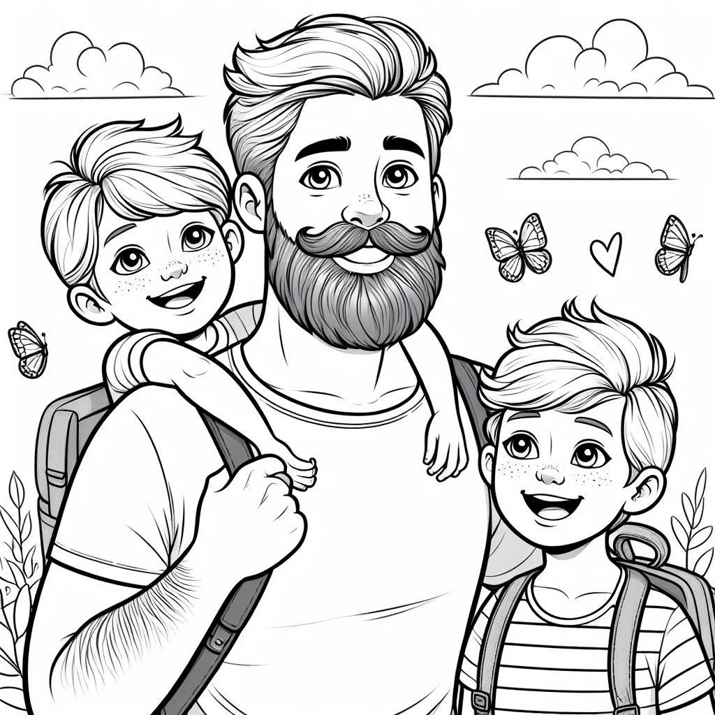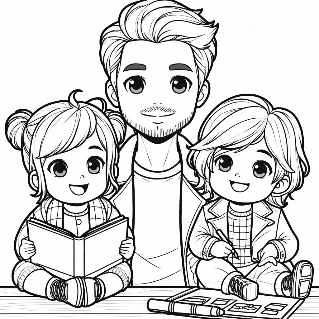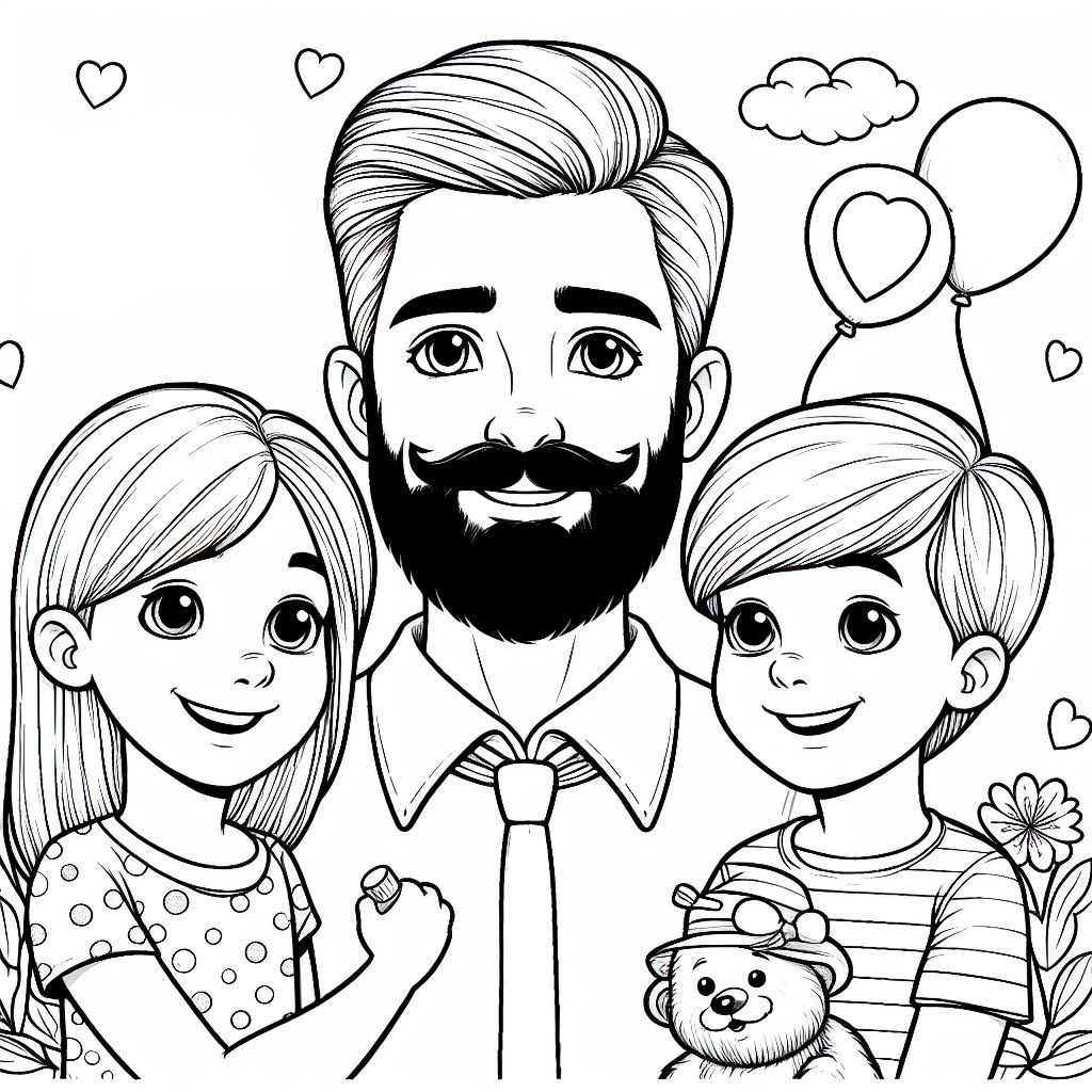 Розмальовки, які можуть бути використані для виготовлення листівок до дня батька – тато і щасливі діти.