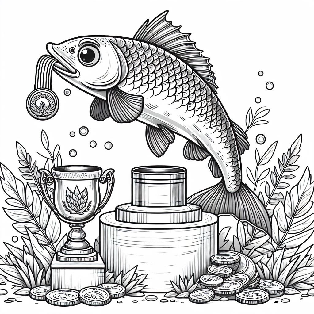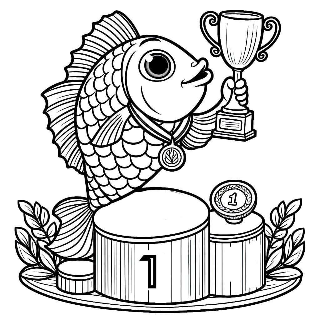 На наших малюнках ви зустрінете рибок-медалістів, які виграли найпрестижніші змагання у світі рибальства. Вони гордо демонструють свої нагороди – чудові медалі, відзнаки переможців, а їхні очі сяють від радості та гордості.