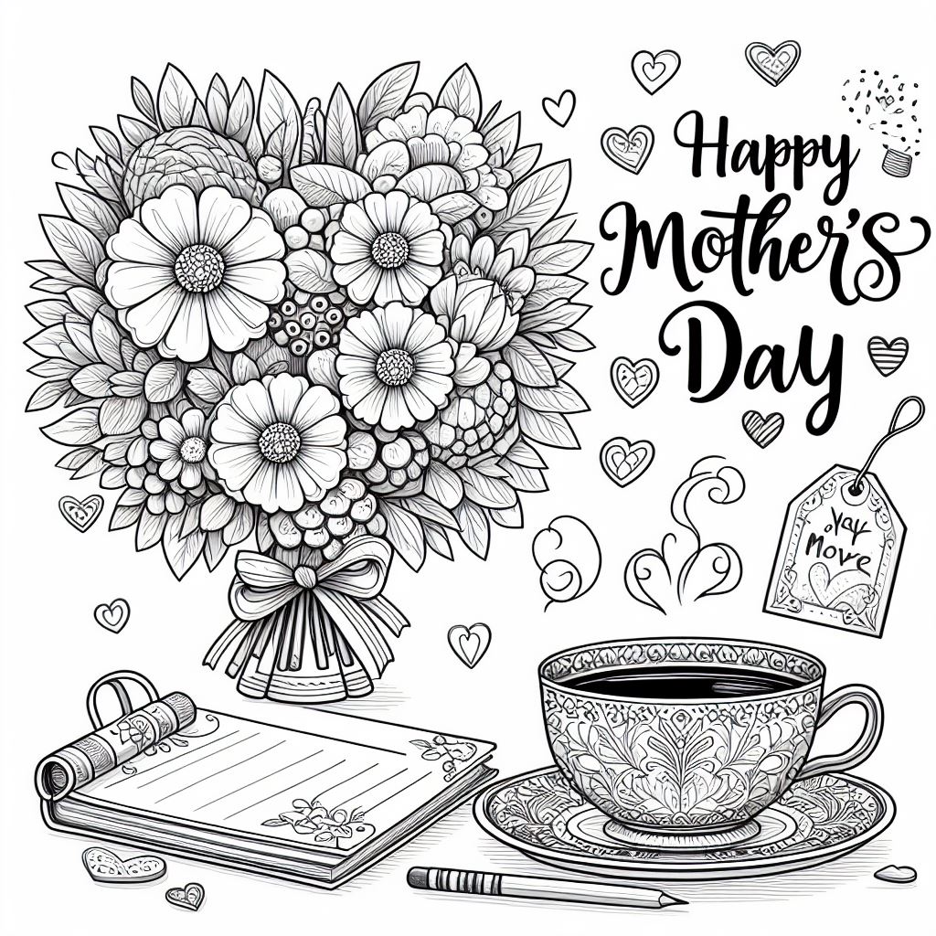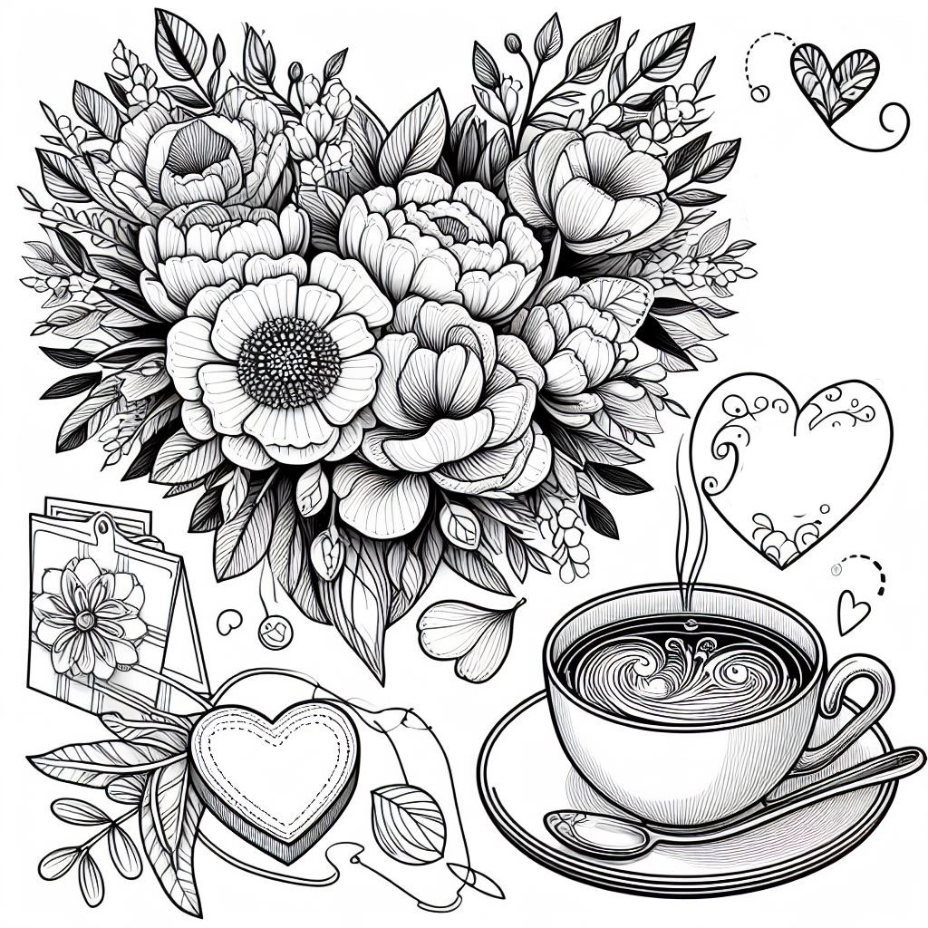 Розмальовки-листівки з букетами квітів,запашною кавою, сердечками можуть бути використані до Дня матері та інших свят. Такі розмальовки можуть бути чудовим способом висловити теплі почуття та вдячність до матерів.