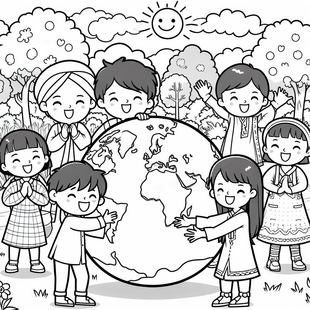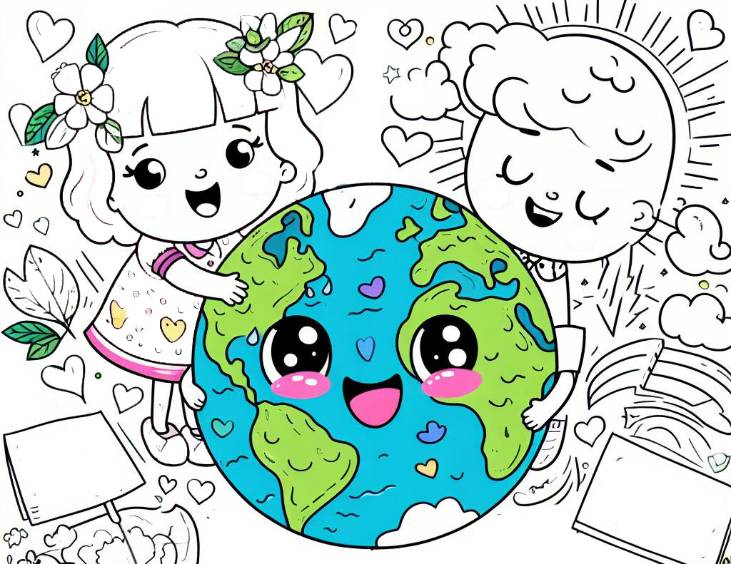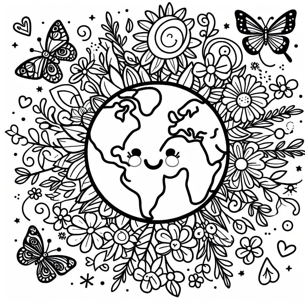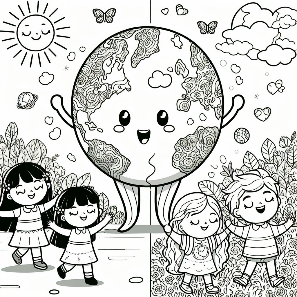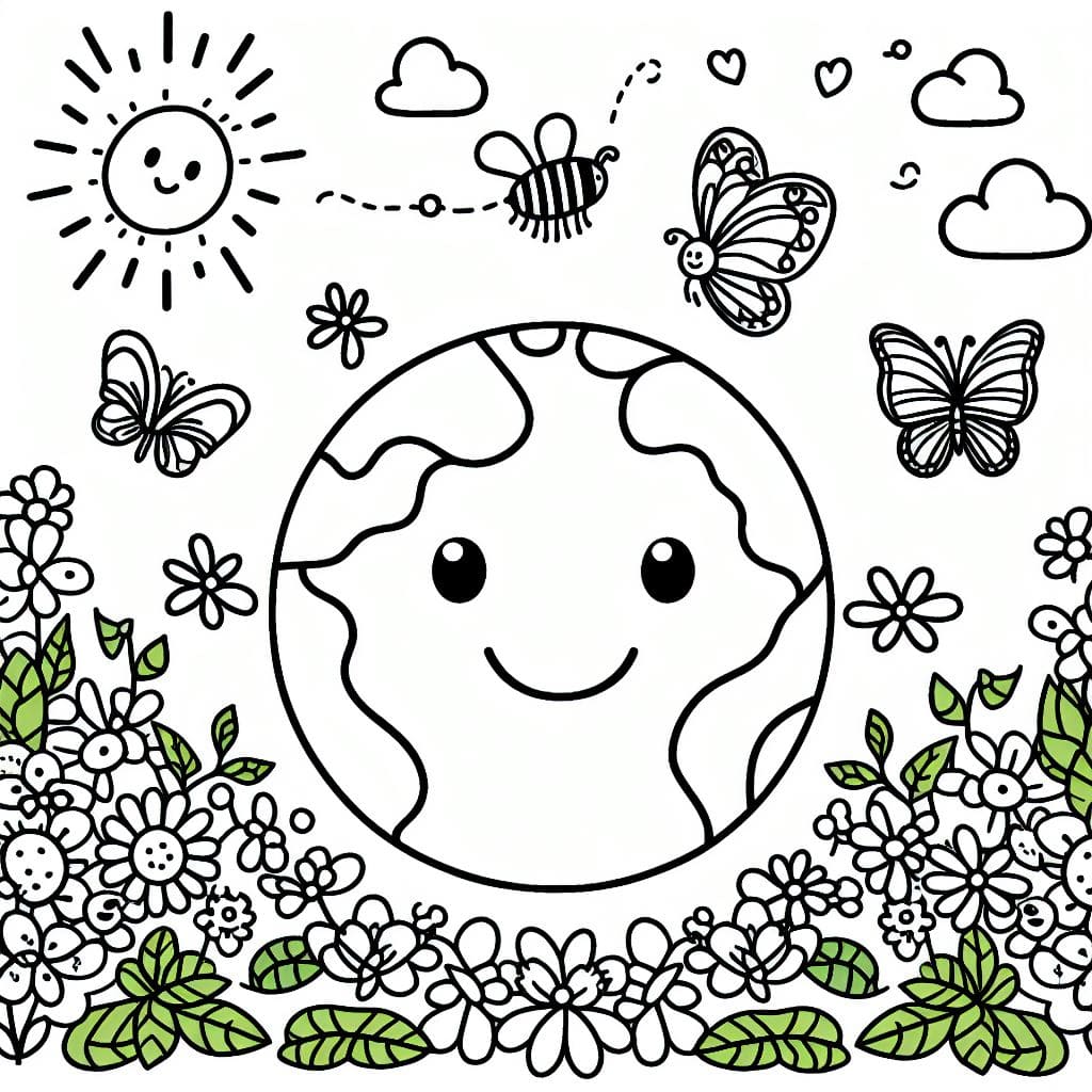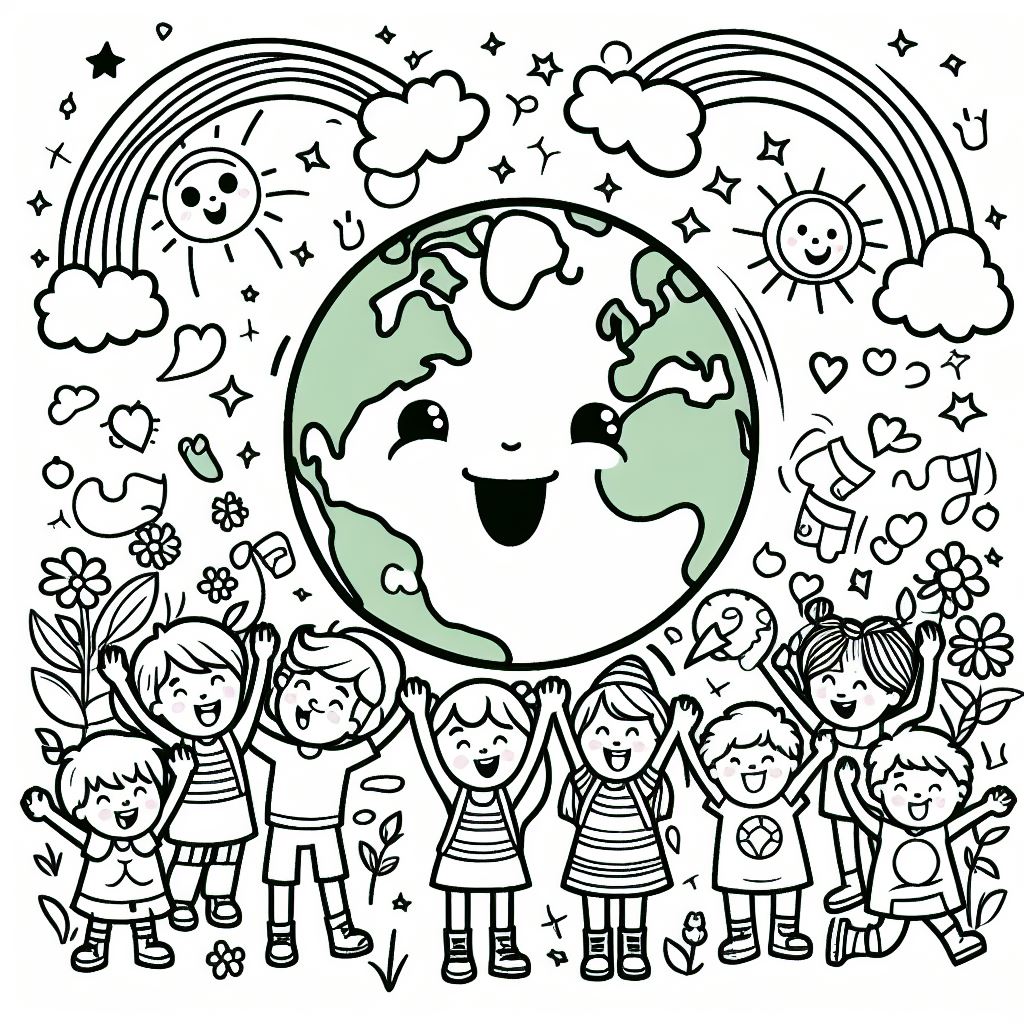 Розмальовки з веселою, щасливою, “здоровою” Землею для дітей до Дня землі.