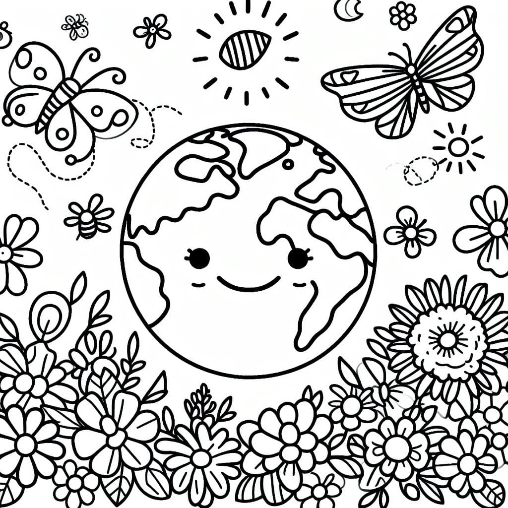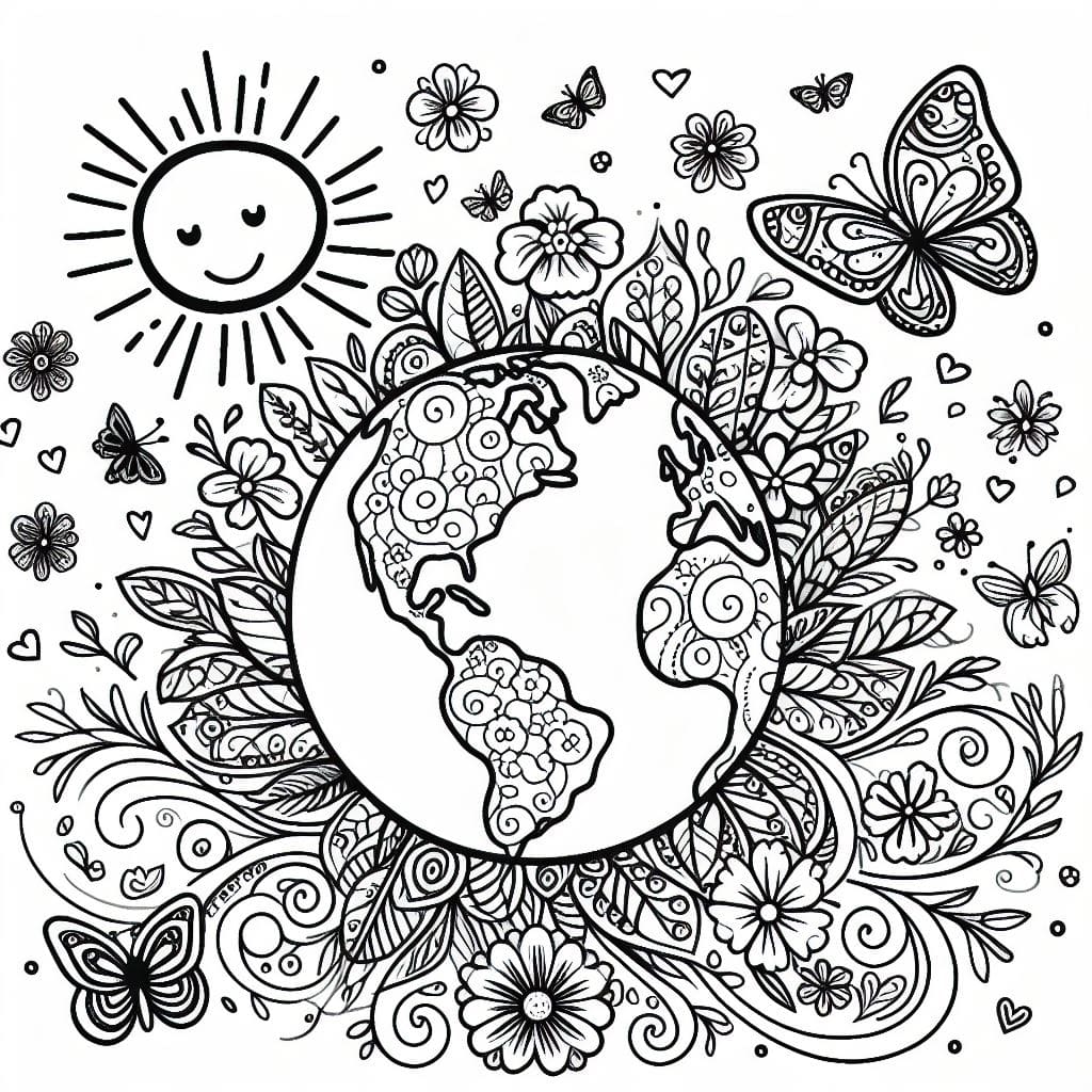 Розмальовки з веселою, щасливою, “здоровою” Землею для дітей до Дня землі.